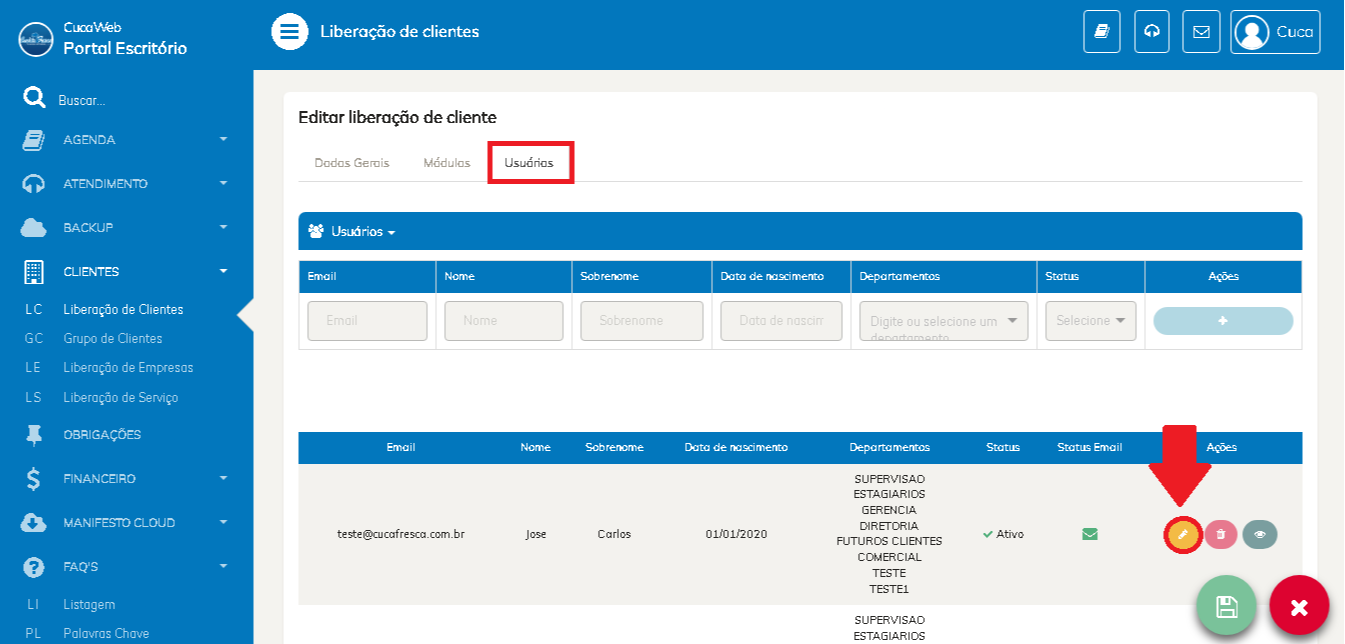 Para alterar o departamento que o usuário pertence, execute os procedimentos abaixo: