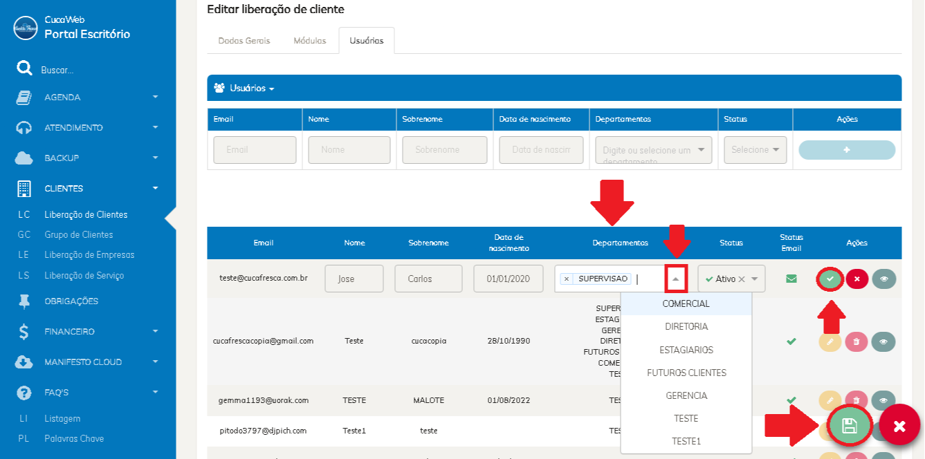 1- Acesse a opção "Liberação de Clientes";