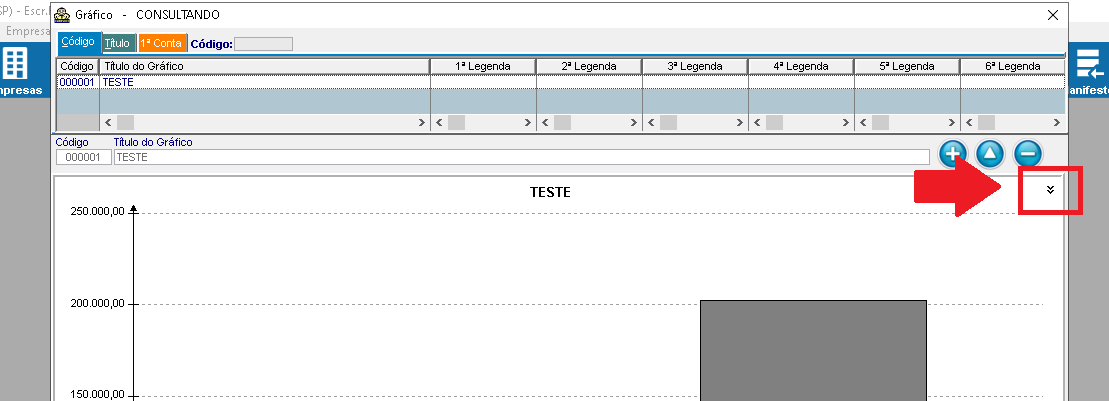 5 - Para configurar as informações do gráfico, clique no ícone da "Seta" no canto superior direito da tela: