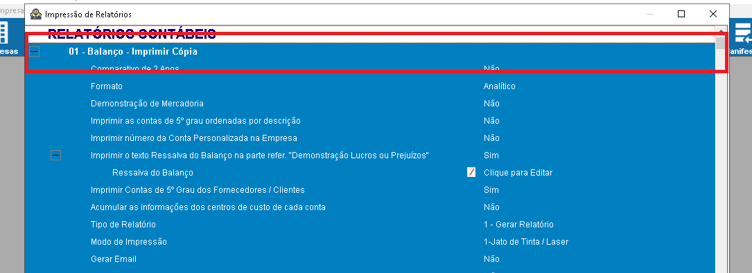 Para realizar a impressão da cópia do balanço, siga os procedimentos abaixo: