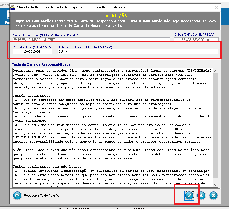 Para a impressão da Carta de Responsabilidade da Administração, siga os procedimentos abaixo: