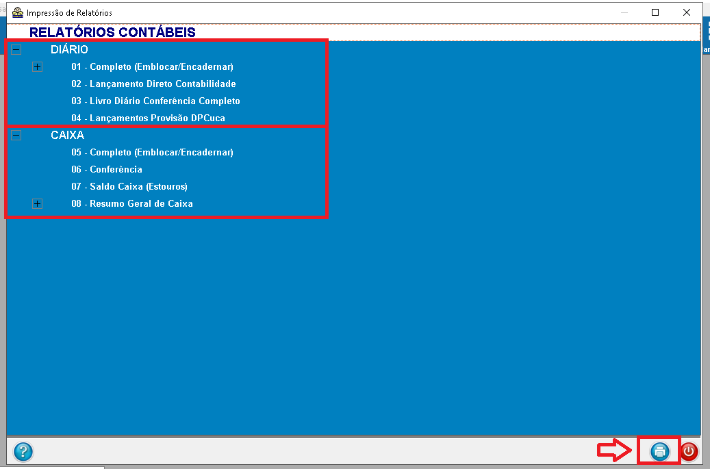 Para fazer a impressão do livro caixa ou diário, siga os procedimentos abaixo: