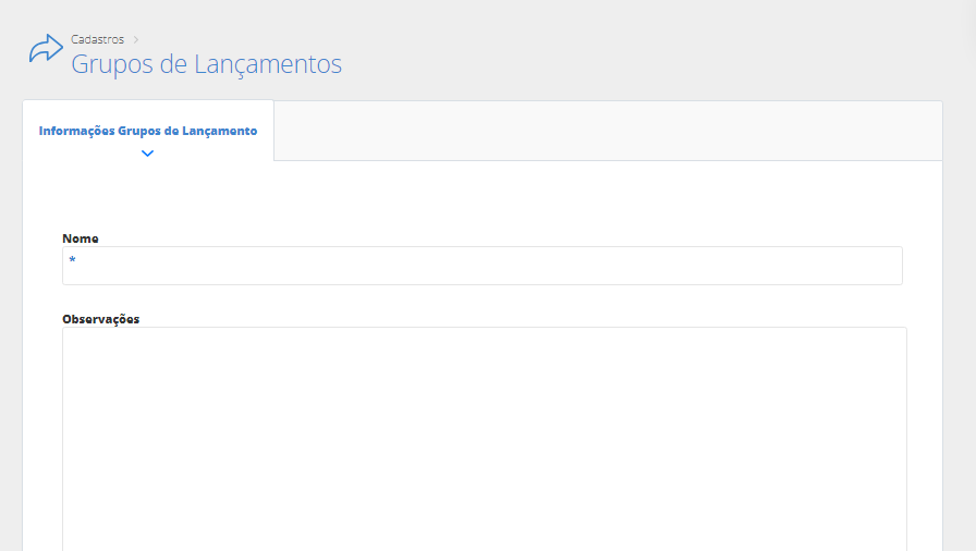 Após preencher, basta clicar em Salvar. Assim o sistema fará o registro do seu grupo de lançamentos.