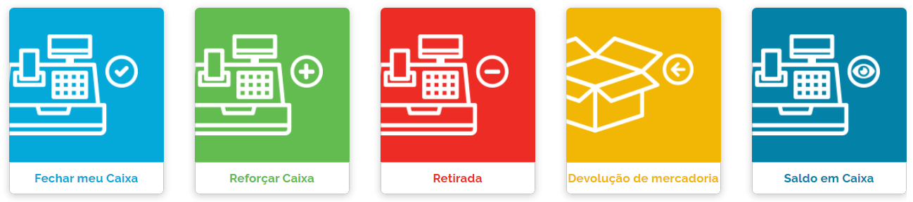 Após acessar as operações do PDV, estará disponível a você como padrão do sistema, 5 menus, sendo eles: