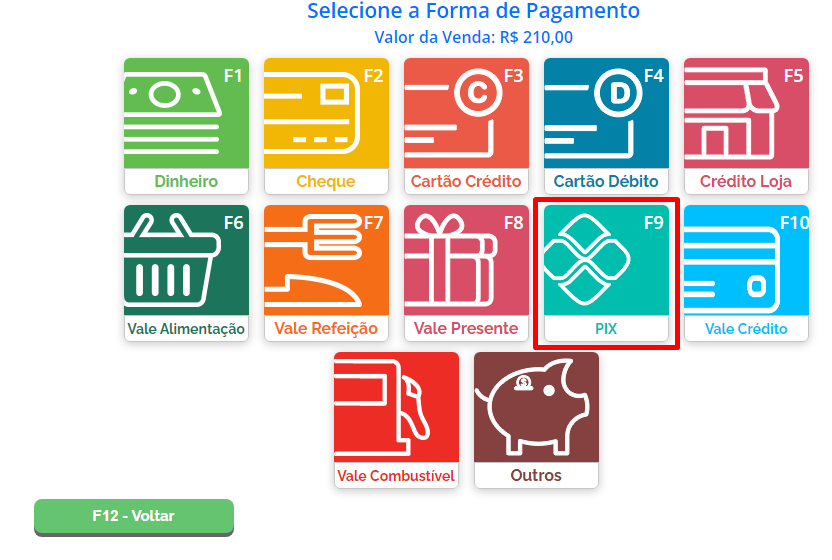 Depois de configurada a chave Pix no cadastro da conta bancária, será possível realizar vendas com a forma de pagamento Pix, onde este valor será repassado diretamente para a conta bancária selecionada.