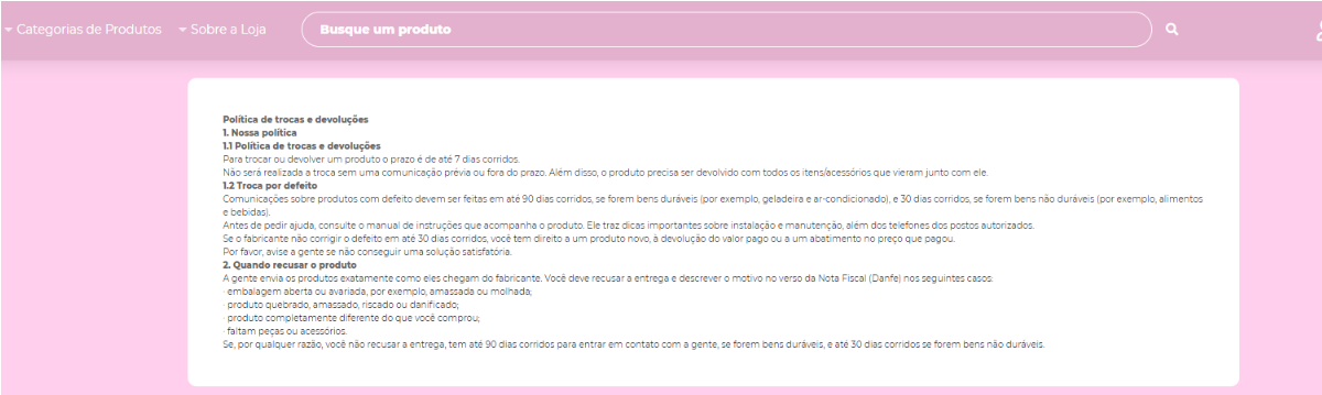 Via de regra, as lojas virtuais possuem diferentes páginas, como políticas de troca, missão, visão e valores, sua história… E outras tantas, criadas de acordo com as necessidades do negócio.