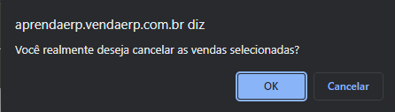 Feito isso, o sistema irá apresentar um popup, para a confirmação do cancelamento do pedido. Clique em OK para cancelar.