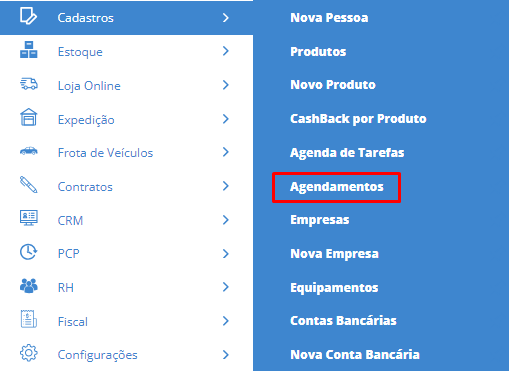 Ao clicar no ícone, o sistema irá abrir uma aba com o Agendamento.
