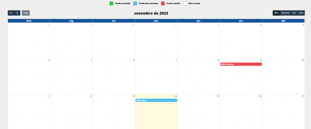 Nesta tela você terá sua Agenda de Tarefas com todos os Agendamentos cadastrados.