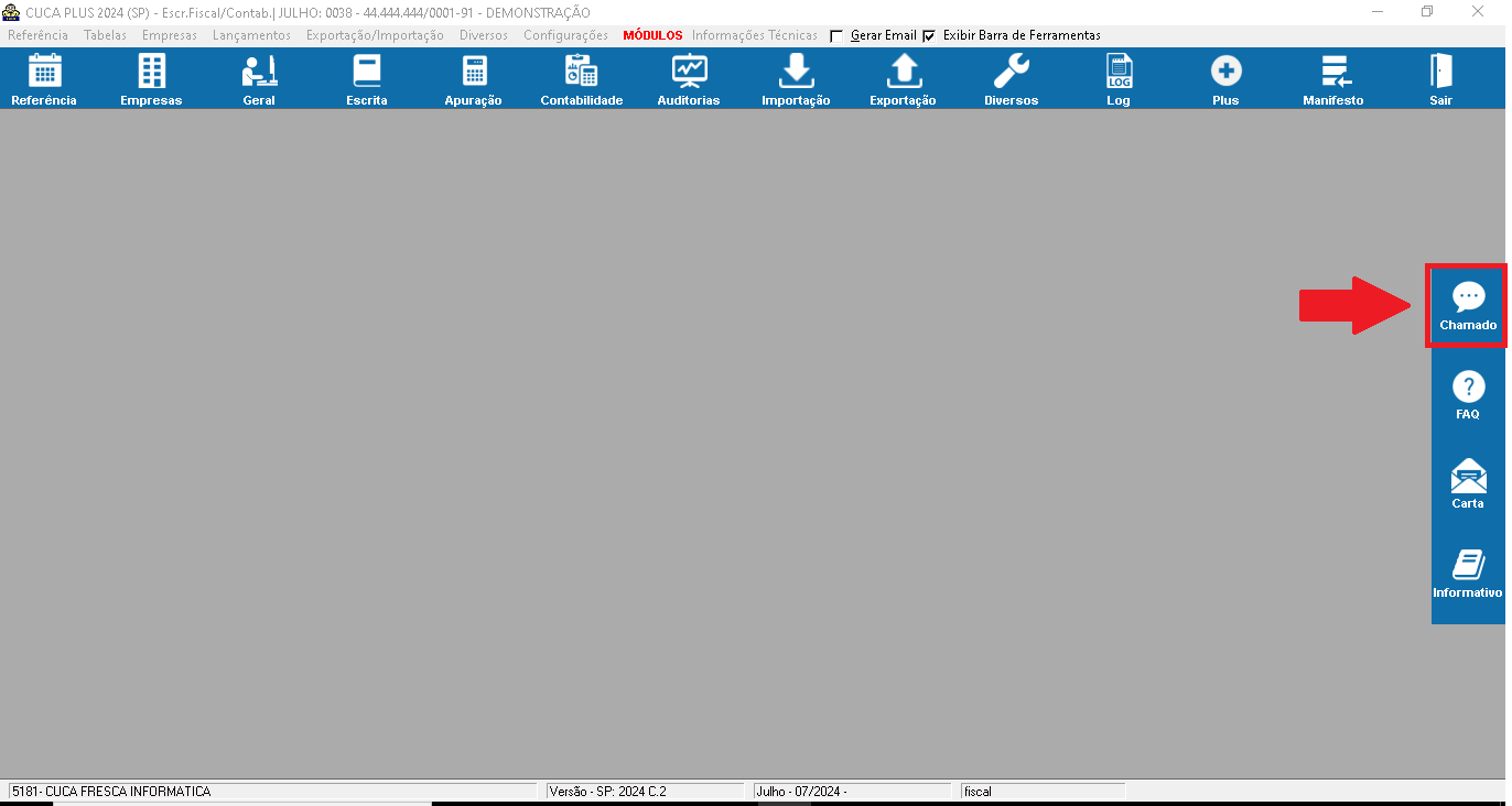 1- Acesse o programa Cuca Fiscal/Contábil;