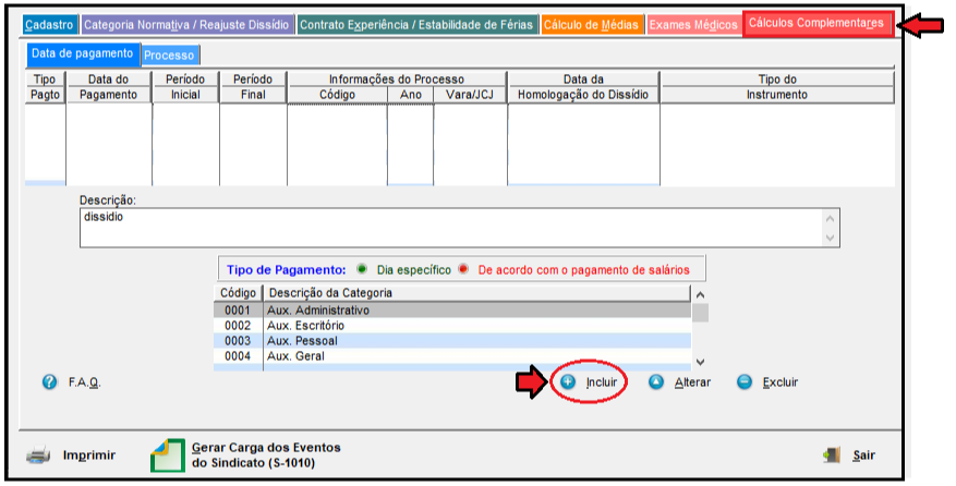 1- Nesta mesma tela de "Sindicato" => "Cálculos Complementares" => "Incluir";