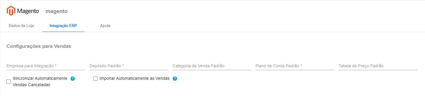 A seguir, vá até a aba Integração ERP e preencha os seguintes dados: