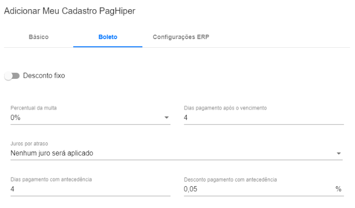 Em seguida clique na aba Boleto, onde novos campos serão abertos ara preenchimento: