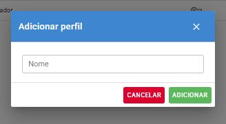 Clique no ícone de "+" para adicionar um novo tipo de perfil, primeiramente será necessário informar o nome desse novo Perfil.