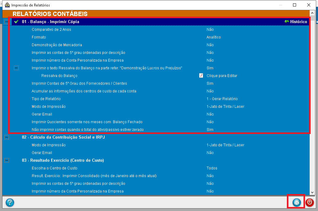 Para fazer a impressão da cópia de balanço, siga os procedimentos abaixo: