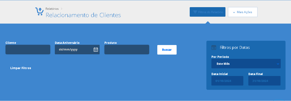 Produto: caso queira verificar os clientes que adquiriram um item em específico, utilize este campo inserir o nome do produto.