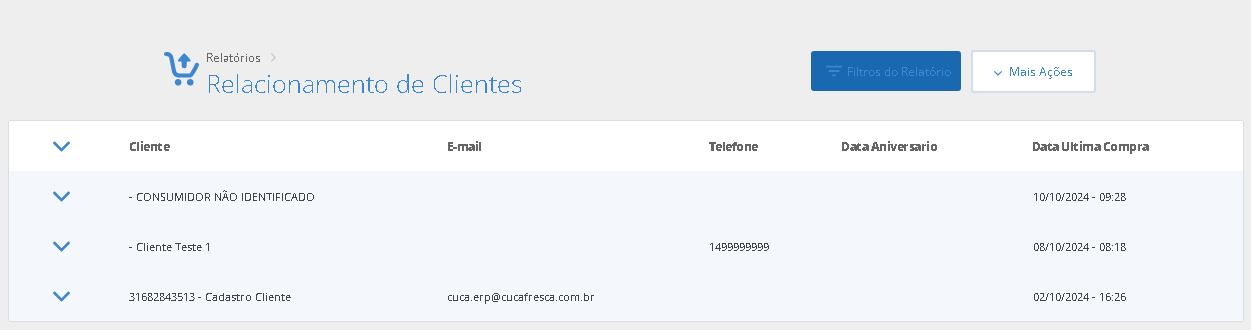 Data da Última Compra: o sistema localizará a data na qual o cliente realizou a última compra.