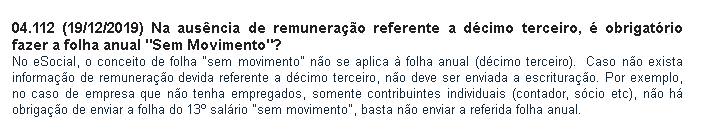 Portanto, para empresas que possuem apenas Sócios, com fechamento mensal com movimento no S-1299, não há obrigação para envio do 1299 anual (13º) sem movimento.