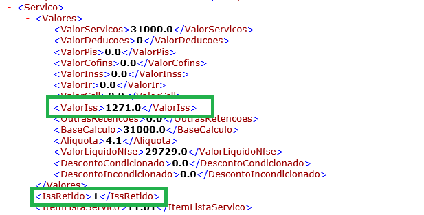 Os arquivos gerados pelo Município de Bauru, possuem uma variação no conteúdo do XML no que refere-se a indicação do ISS Retido, verificamos duas situações: