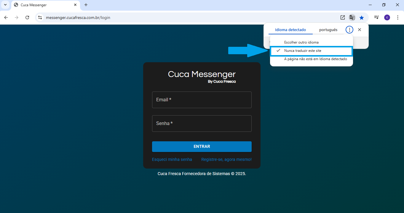 2. Clique nos 3 pontos e em "Nunca traduzir este site".